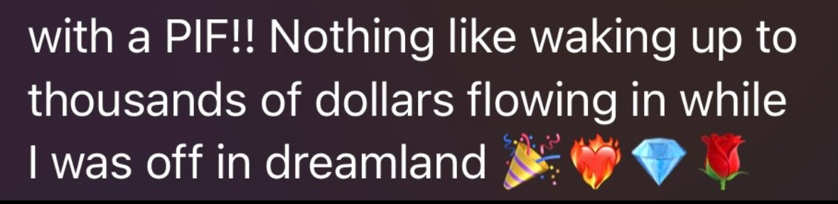 An exclusive telegram chat with access to me 5 days/ week for quick strategy, brainstorming & answers to Qs in real time!