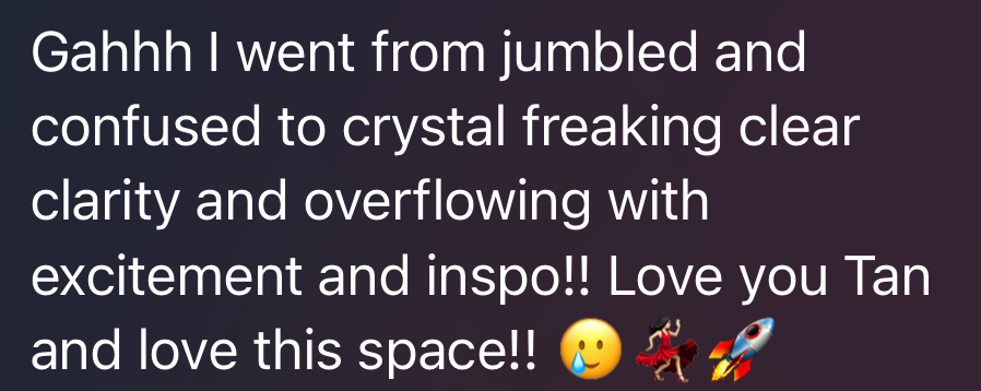 Weekly coaching calls for deep dives on anything you're navigating in life & biz to get you clarity fast