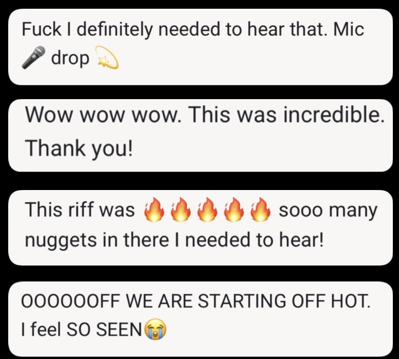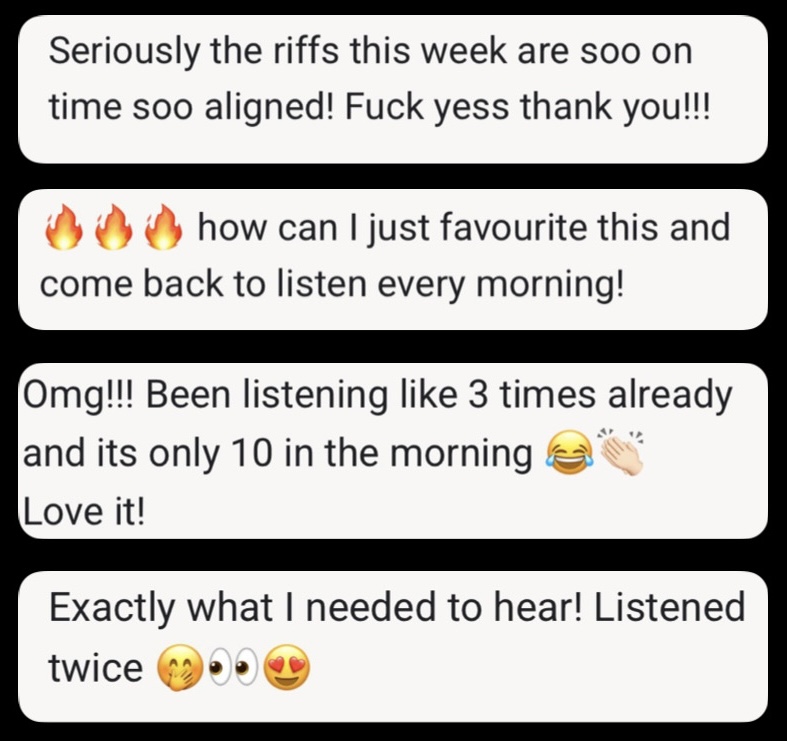 I'm giving YOU limited time access to the exclusive SOD community for 14 days where you'll be able to binge over 100 riffs covering everything from sales & strategy to quantum manifestation & identity evolution, PLUS get the LIVE riffs I drop during your time inside!!⚡️